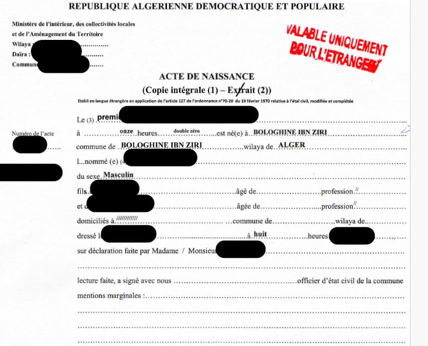 Téléchargez gratuitement le certificat de naissance algérien EC7 en PDF. Obtenez la copie intégrale de l’acte de naissance délivrée par la mairie. Document récent, indispensable pour vos démarches.