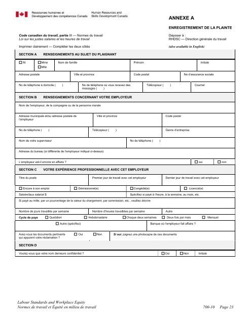 Téléchargez gratuitement le Formulaire de plainte (PDF) et indiquez vos pronoms préférés pour le traitement de votre plainte. Incluez votre adresse courriel pour un suivi efficace.